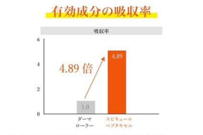 ダーマローラーと比較し、4.89倍以上吸収率が増加しています